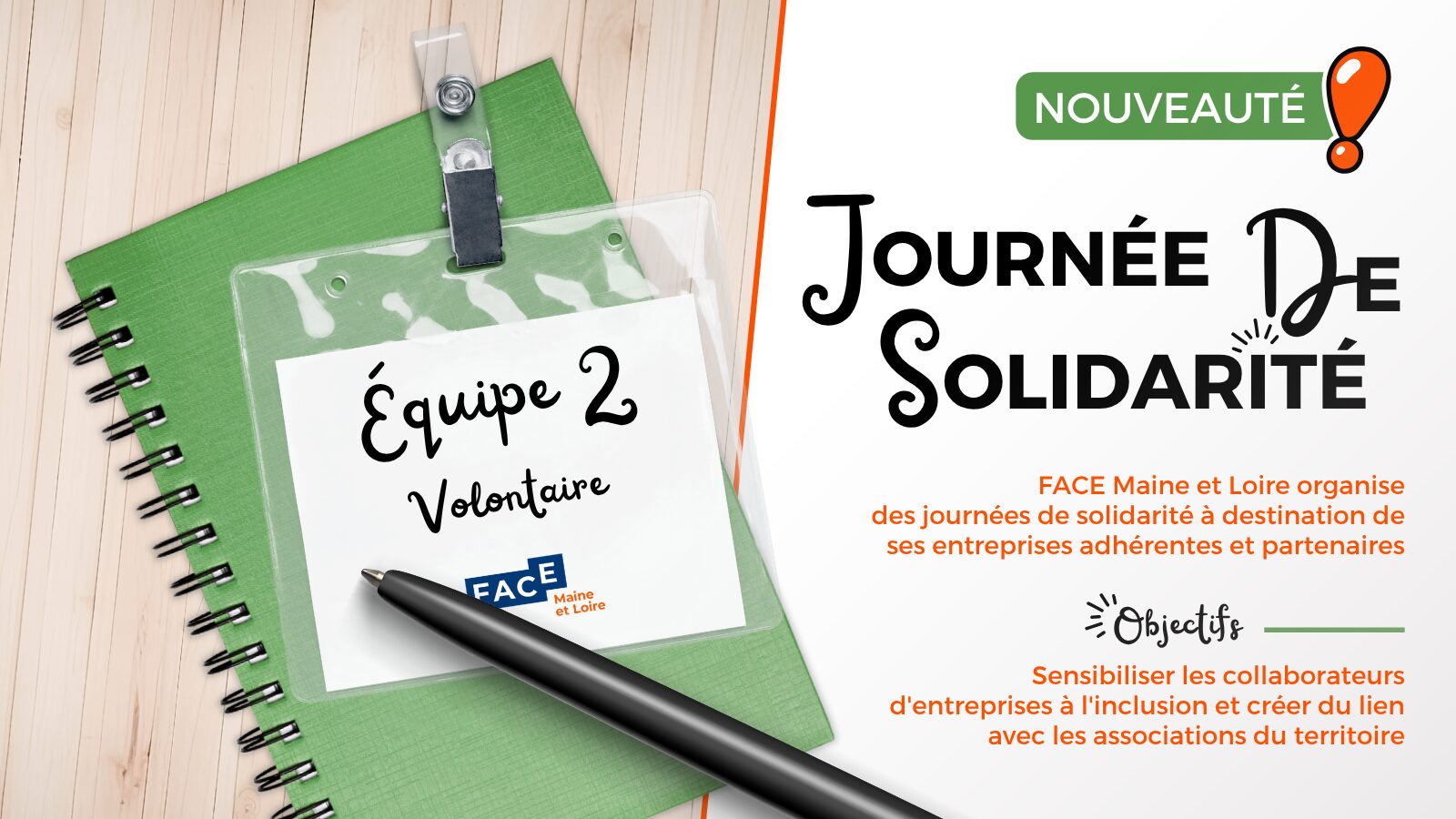 Vous êtes une association du territoire et être volontaire pour accueillir des collaborateurs d’entreprise dans le cadre d’une Journée de Solidarité ? Vous pouvez compléter ce formulaire afin de recenser vos besoins. Les informations recueillies permettront au club FACE Maine-et-Loire de co-construire des missions adaptées, dans un cadre sécurisé et réaliste pour votre structure.